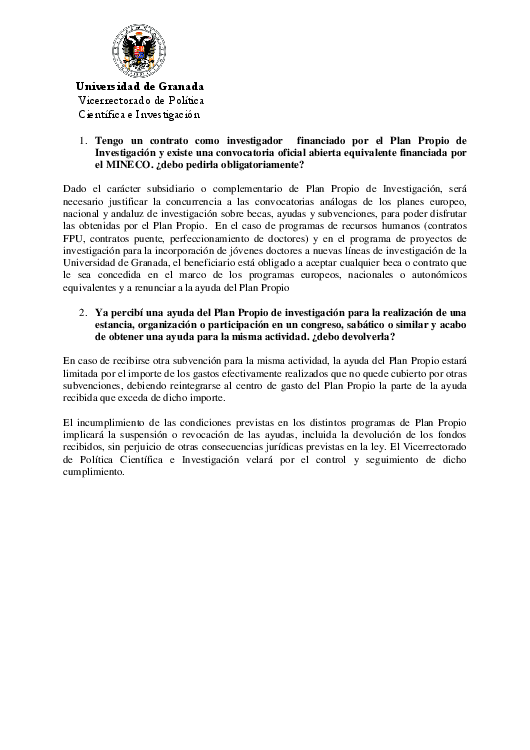 PREGUNTAS FRECUENTES RELATIVAS A PLAN PROPIO DE INVESTIGACIÓN